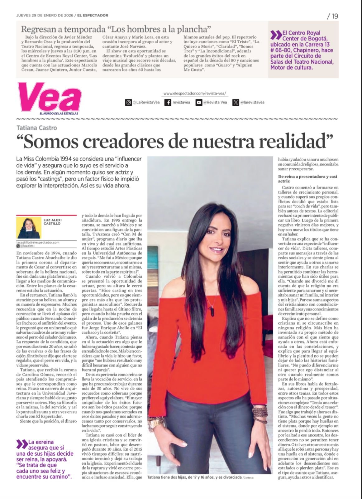 MEDIOS 5/5 Entrevistas en Tv / Medios Prensa digital VER MÁS VER MÁS VER MÁS VER MÁS VER MÁS VER MÁS VER MÁS VER MÁS VER MAS VER MAS VER MÁS VER MÁS VER MÁS VER MÁS VER MÁS VER MÁS VER MAS Entrevistas en Instagram Ver esta publicación en Instagram Una publicación compartida por Tatiana Castro (@tatianacastrooficial) Ver esta publicación en Instagram Una publicación compartida por Tatiana Castro (@tatianacastrooficial) Ver esta publicación en Instagram Una publicación compartida por Buen Día Colombia (@buendiacolombia) Ver esta publicación en Instagram Una publicación compartida por Tatiana Castro (@tatianacastrooficial) Ver esta publicación en Instagram Una publicación compartida por Tatiana Castro (@tatianacastrooficial) Ver esta publicación en Instagram Una publicación compartida por Tatiana Castro (@tatianacastrooficial) Ver esta publicación en Instagram Una publicación compartida por Bravíssimo - CityTv (@bravissimocity) Ver esta publicación en Instagram Una publicación compartida por Blu Radio (@bluradio) Ver esta publicación en Instagram Una publicación compartida por Tatiana Castro (@tatianacastrooficial) Entrevistas en Radio / Podcast Bla Bla Blu 19 de Junio del 2023 VER MAS Bla Bla Blu 24 de Enero del 2024 VER MAS Bla Bla Blu 8 de Agosto, 2024 VER MAS Bla Bla Blu 8 de Agosto, 2024 VER MAS Revista y medios